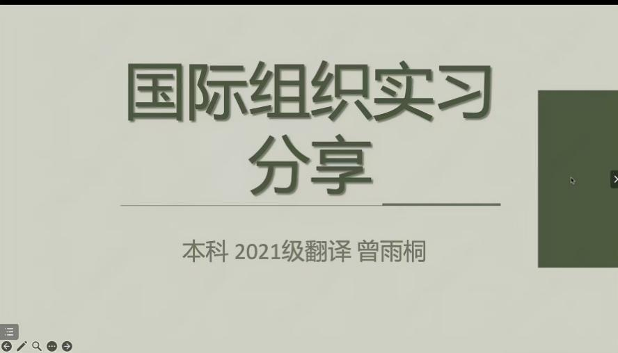 1月24日下午,必赢76net线路唯一官方网站成功举办看今朝,展未来——国际组织实习专题分享交流会。本场交流会由必赢76net线路唯一官方网站研究生会实践部组织,特邀2022级英语口译专业硕士研究生杨佳宁、2022级英语笔译专业硕士研究生宋俊、翻译专业2021级本科生曾雨桐为同学们分享国际组织实习经验,必赢76net线路唯一官方网站70余名学生积极参与,辅导员张新苑老师出席本次交流会