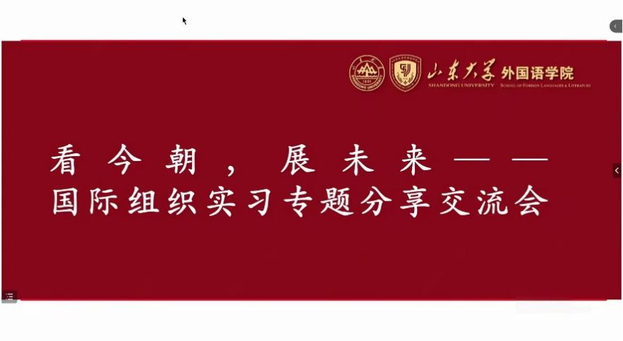 本次国际组织专题实习经验分享会为山大外院“看今朝展未来”就业指导月系列活动之一,同学们不仅加深了对国际组织的了解,也增强了未来投身国际事务的信心和动力。三位嘉宾的分享内容从国际组织概况到实习申请,再到国际事务的实际参与,为同学们提供了全方位的指导和建议为同学们的未来规划注入了新的活力,激发了他们探索未知、勇攀高峰的无限可能。