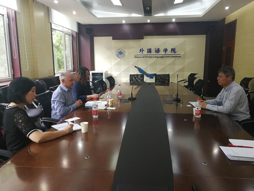 5月16日,英国卡迪夫大学现代语言、翻译及政治学院院长NickParsons及中国市场官员王亚楠等一行三人访问必赢76net线路唯一官方网站,必赢76net线路唯一官方网站副院长马文会见了来访客人,双方进行了友好的会谈。