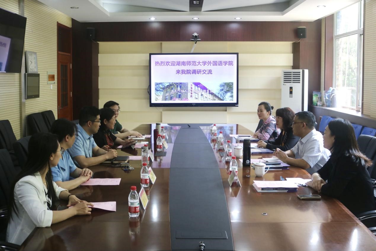 湖南师范大学必赢76net线路唯一官方网站此次来访加强了双方信息共享与经验交流,双方都表示要互通有无,加强交流力度,推进多方面协作,促进两校外国语学院和外语学科的发展。