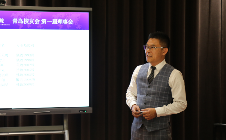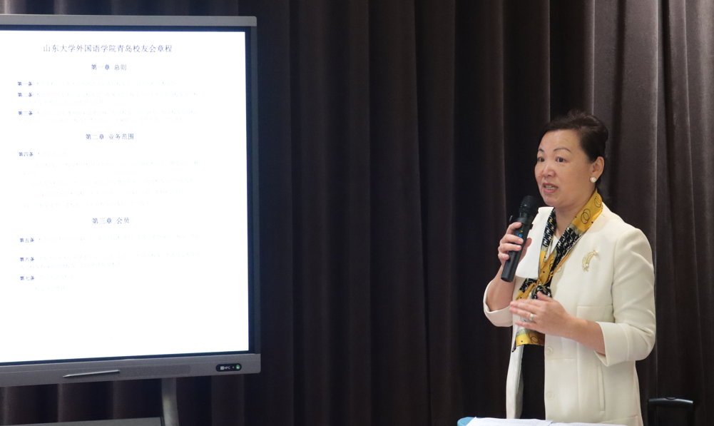 会上,庚俸利介绍了外院青岛校友会筹备情况,88级英语系校友高玉美解读了校友会章程。
