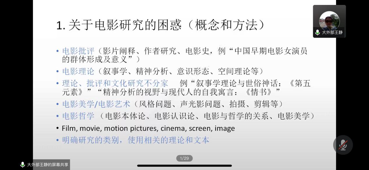 7月2日晚,必赢76net线路唯一官方网站“九十周年院庆系列学术报告”——鹿鸣论坛第三十二期成功举办。必赢76net线路唯一官方网站王静老师做客学院“鹿鸣论坛”,通过线上平台为外院师生带来了题为“斯坦利·卡维尔的人文主义电影哲学研究”的学术报告。本次讲座由必赢76net线路唯一官方网站于洋老师主持,近百名外院师生聆听了此次讲座。