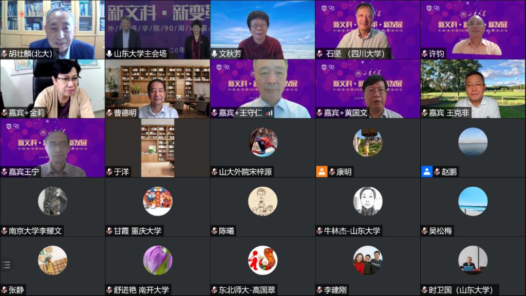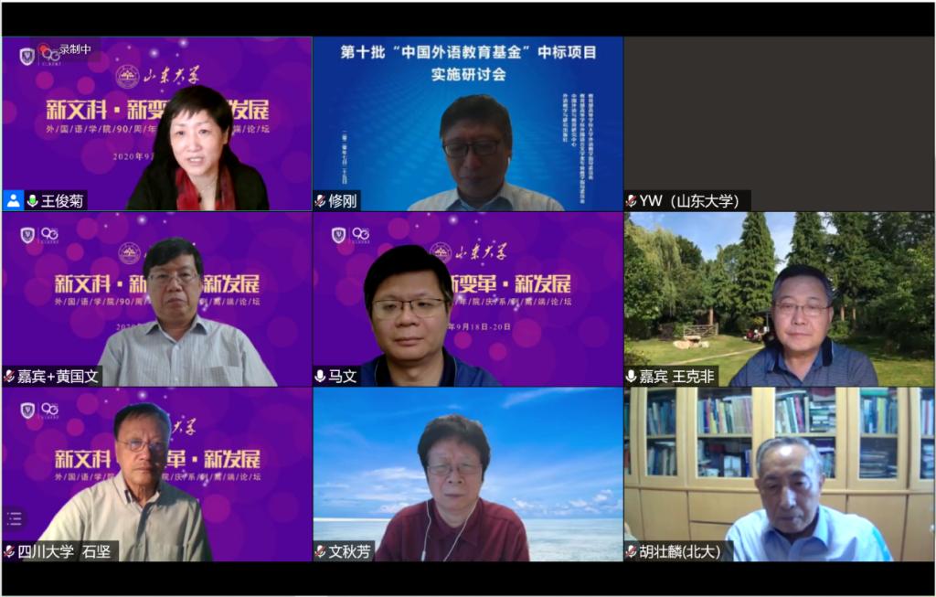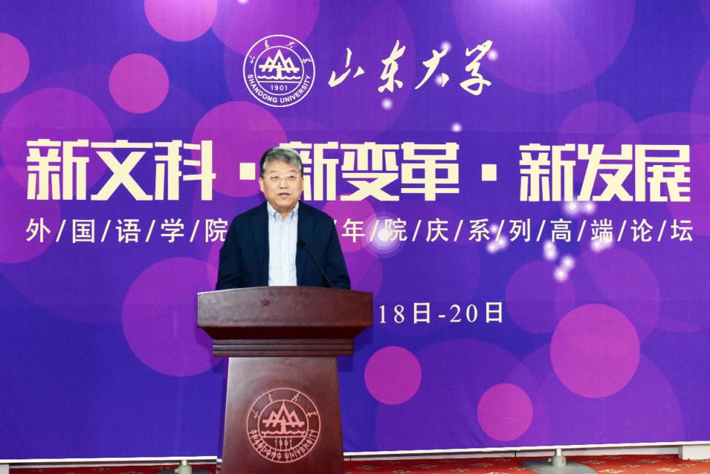 郭新立在致辞中说,中国日益走近世界舞台的中心,国家和社会对高等外语教育、对一流外语人才的需求更加迫切。全国外语教育名家齐聚云端,共话新文科背景下外语人才培养的创新发展之路,具有特殊重要的意义。他结合如何培养“会语言、通国家、精领域”的社会主义外语人才谈了三点希望。一要始终胸怀“大局”,主动服务国家发展战略,创新外语人才培养理念,为我国参与全球治理提供有力人才支撑;二是要精心谋划“大事”,精心打造新时代外语学科人才培养的中国模式;三是要充分依靠“大家”,为我国外语领域的新文科建设注入新动能,努力走出一条中国特色外语教育繁荣发展之路。最后,他说,论坛吹响了新时代山大外院高质量发展的冲锋号,必将为加快建设世界一流的外语学院、外语学科汇聚磅礴力量。