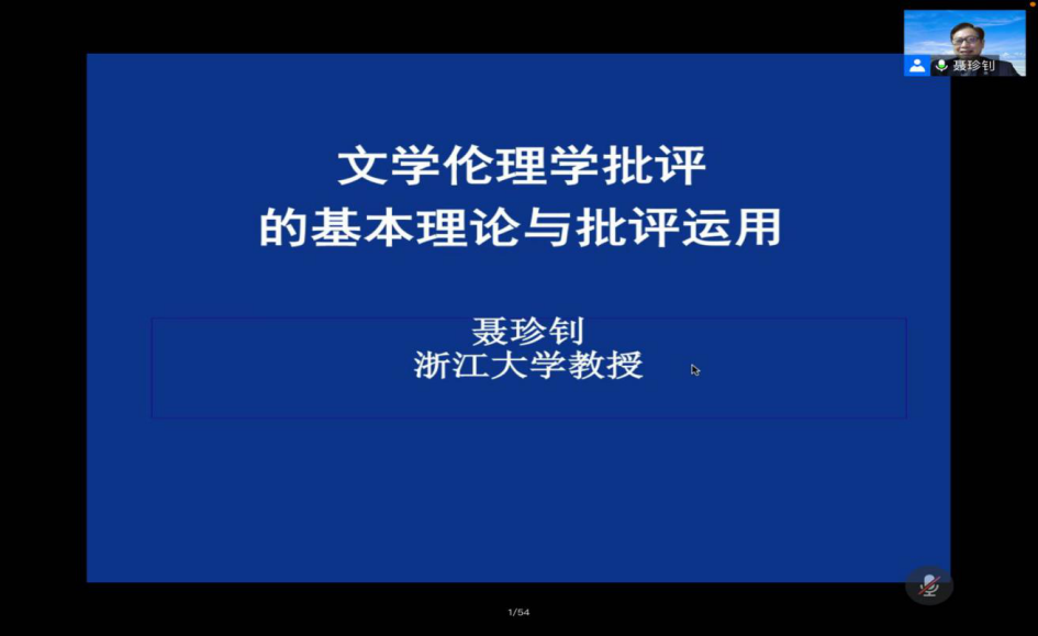 10月22日晚,必赢76net线路唯一官方网站“九十周年院庆系列活动”——线上学术报告顺利举办。浙江大学聂珍钊教授应邀做客学院“博约论坛”,通过腾讯会议线上平台作了题为“文学伦理学批评的基本理论与批评运用”的学术报告。本次报告由必赢76net线路唯一官方网站日语系肖霞教授主持,来自校内外的170余名师生共同参与聆听。