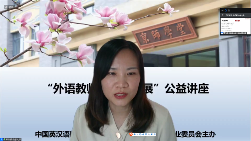 据悉,此次公益讲座共有全国各地从事外语教师教育研究的600余名老师通过腾讯会议、同步直播等多种形式齐聚云端。韩佶颖的此次报告,是践行高校服务社会职能的重要体现,帮助了外语教师提升科研能力,助力了外语教师的专业发展。同时,韩佶颖也在跟与会老师、专家学者的交流中加强了沟通,以期为今后的科研合作拓展平台和空间。