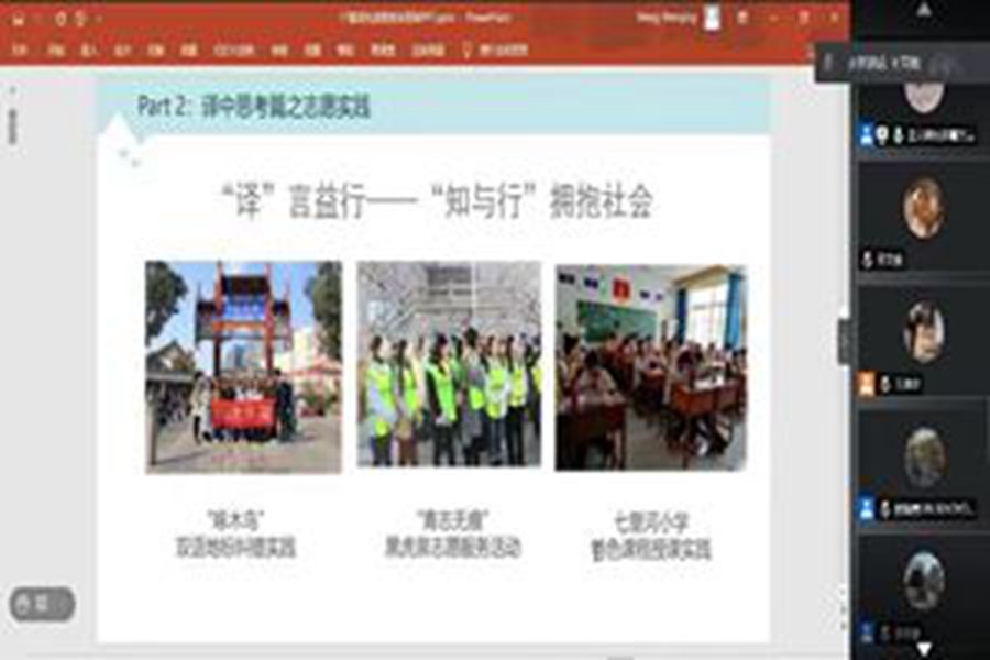 随后,王文卿将班级建设与翻译实践相结合,具体介绍了翻译班级文化建设的方法。她提出,班集体的建设需要通过专业学习、志愿实践、心职规划、文体宣传、党政思修五位一体、全面推进的方法形成“从1到99+”的班级特色。