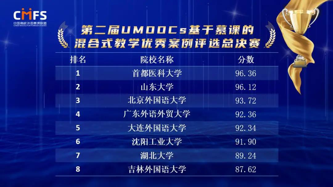 此前,张聪副教授作为课程负责人的《学术英语写作》课程团队在《UMOOCs基于慕课的混合式教学优秀案例评选》网络突围赛中从全国百余支队伍中脱颖而出,荣获全国8强,获得12月20日在全国总决选角逐最终排名的资格。在总决选现场,课程团队凭借现场展示、提问答疑两个环节中的精彩表现荣获大赛亚军。