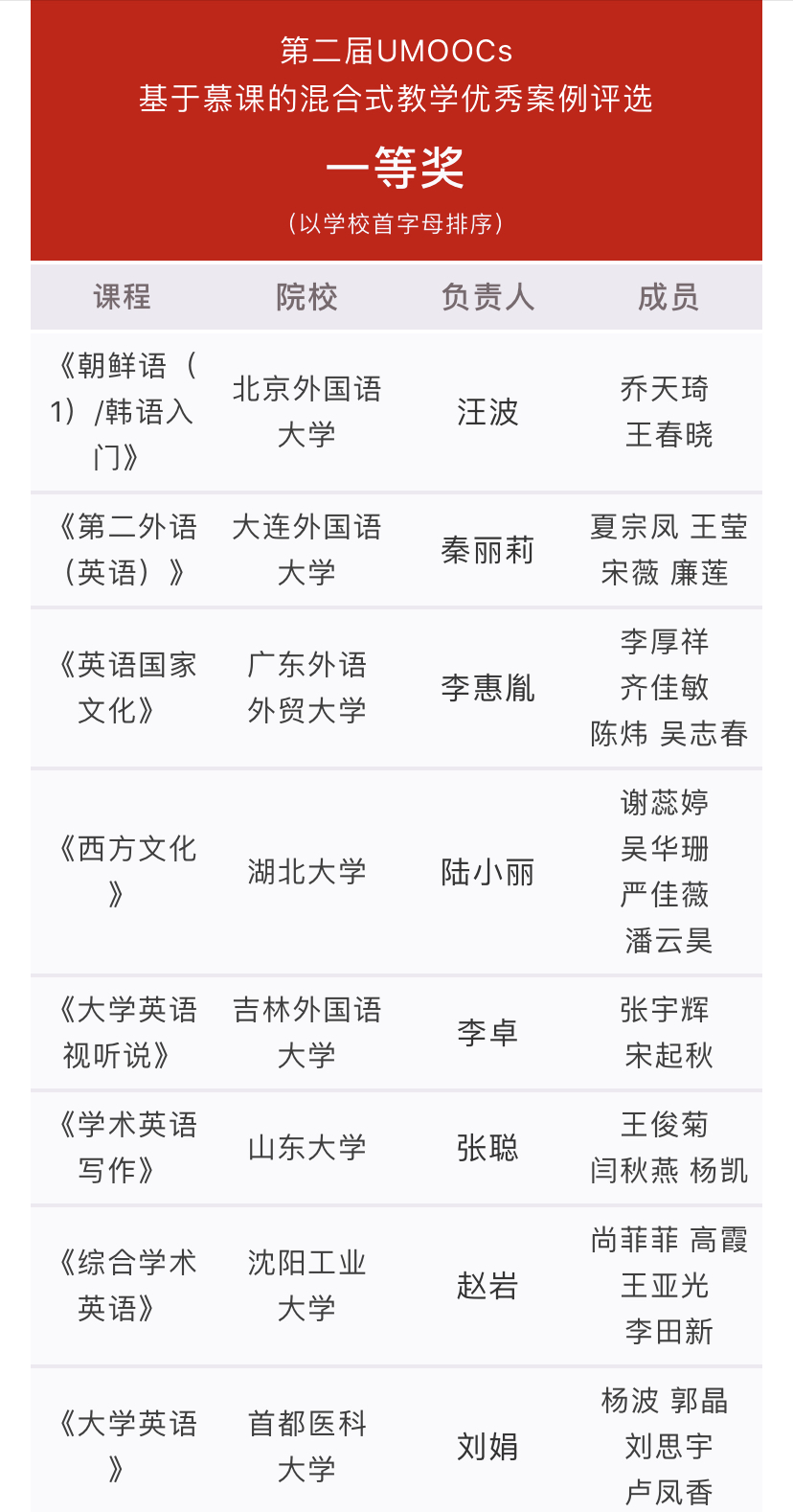 12月20日,由北京外国语大学主办、北京外研在线数字科技有限公司承办的第四届中国高校外语慕课联盟大会在京召开。同时,为推动高校信息化教学改革,促进基于慕课的混合式教学实践,联盟开展“第二届UMOOCs基于慕课的混合式教学优秀案例”全国总决选,必赢76net线路唯一官方网站应用英语系张聪副教授作为课程负责人的《学术英语写作》课程团队荣获亚军。课程由国内二语写作顶级专家、国家级教学名师、必赢76net线路唯一官方网站王俊菊教授宏观把控和指导,团队成员还包括闫秋燕教授和杨凯博士。张聪副教授被聘为“中国高校外语慕课联盟认证培训师”。