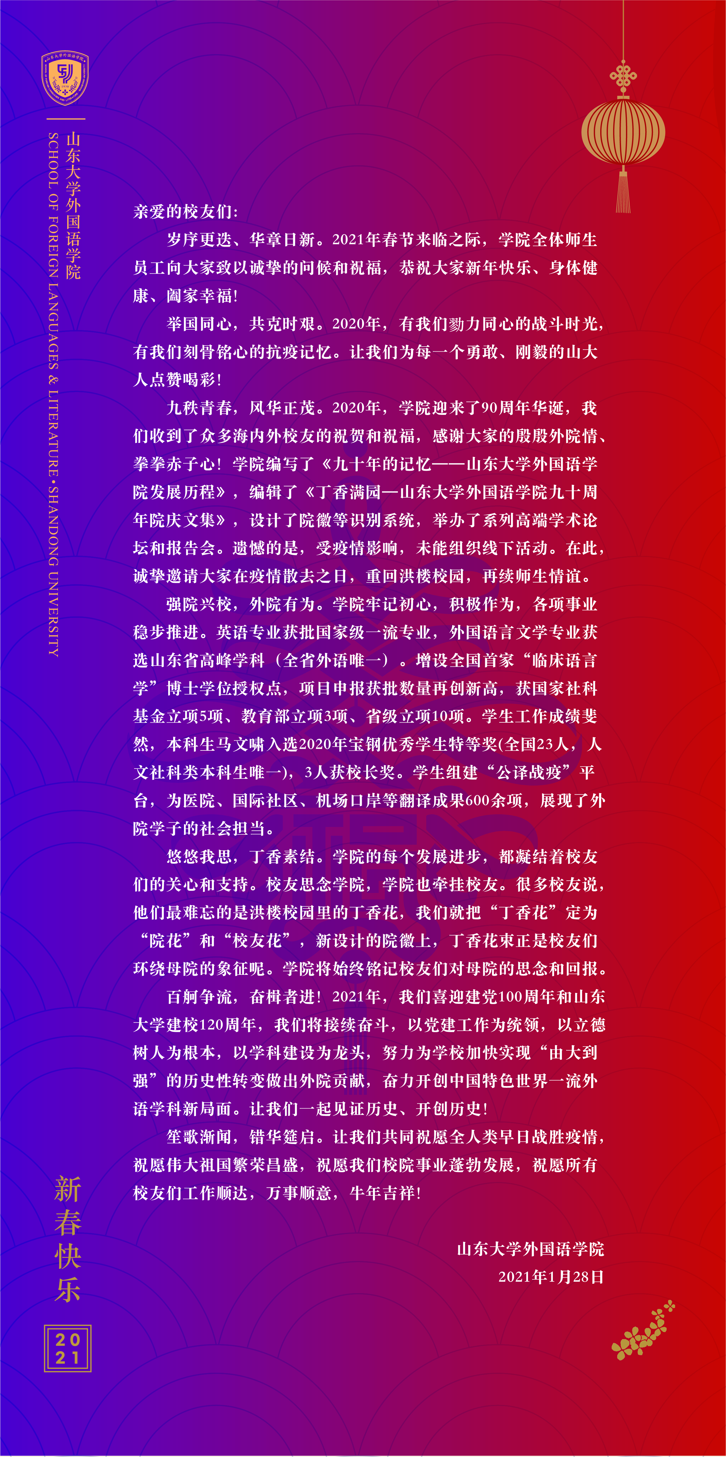 Copyright © 2018 School of Foreign Languages and Literature.Shandong University. 版权所有:必赢76net线路(中国)唯一官方网站