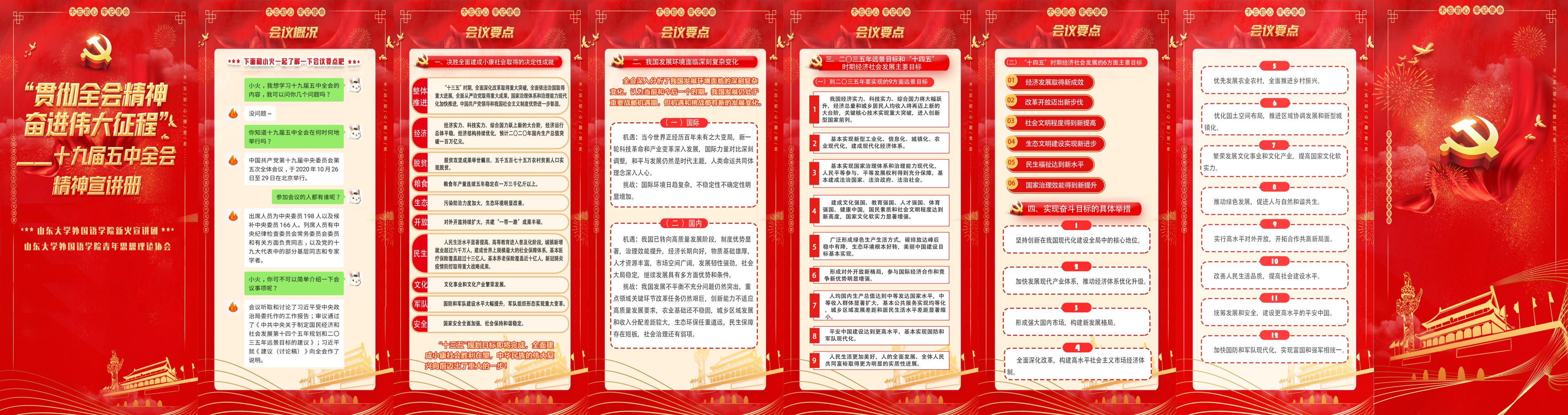 十九届五中全会宣传册主要介绍了我国发展环境面临的深刻变化、二〇三五远景目标等内容,从宏观背景层面引入宣讲内容;学习手账则将重点转向十九届五中全会本身,通过对全会内容的介绍,全方位展示了本次会议的方方面面。最后,由于本次宣讲活动的主战场位于农村地区,宣讲团通过“接续决胜脱贫攻坚 全面实施乡村振兴”主题PPT对全会内容进行了拓展,将全会内容聚焦于三农问题。整套宣传材料层层深入、设计科学合理,在宣讲实践中将发挥“理论灯塔”的效果。