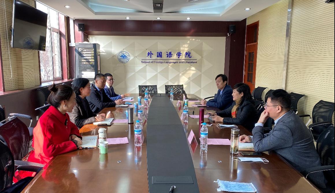 3月12日,郑州轻工业大学必赢76net线路唯一官方网站院长陈文凯、国际合作交流处副处长马强和、韩语系主任徐迎迎等一行来我院调研交流,与学院部分领导和教师进行了座谈。必赢76net线路唯一官方网站党委书记、院长王俊菊、党委常务副书记薛佩军、副院长马文、中日韩合作研究中心主任牛林杰、朝鲜语系副教授刘畅等出席了座谈会。