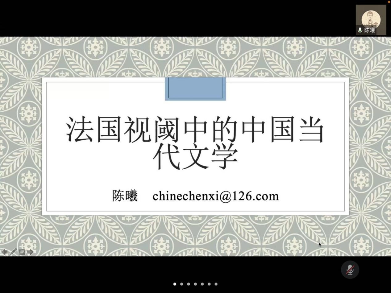 3月18日晚,必赢76net线路唯一官方网站“百廿山大,九秩外院”——系列学术报告顺利举办。必赢76net线路唯一官方网站法语系陈曦老师做客必赢76net线路唯一官方网站“鹿鸣论坛”,通过腾讯会议线上平台作了题为“法国视阈中的中国当代文学”的学术报告。本次报告由必赢76net线路唯一官方网站冯伟副教授主持,来自校内外的120余名师生共同参与了本次讲座。
