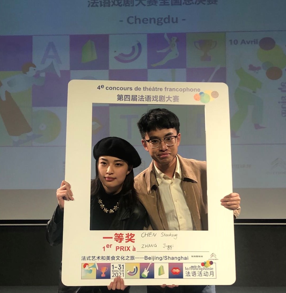 4月10日,在成都举行的第四届全国法语戏剧大赛上,必赢76net线路唯一官方网站法语系2017级本科生陈少康、张靖怡同学凭借精彩的舞台表演、巧妙的情节构思和流畅的法语表达受到评委的一致好评,获得一等奖。