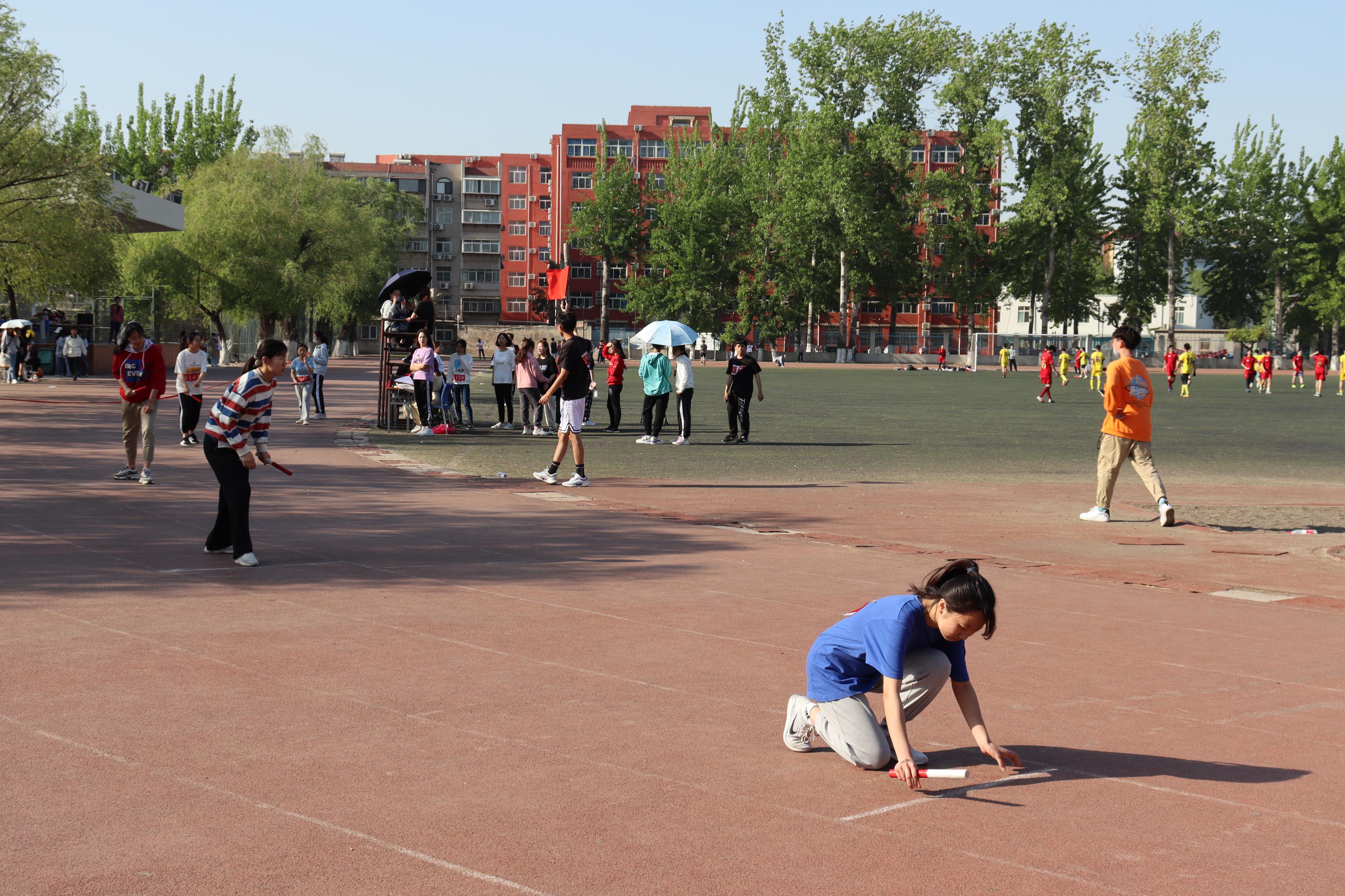 运动会班级文化展示环节,20级外院各班级经过精心构思、刻苦排练的表演大展风采。各班代表队风格各异,通过别出心裁的队形变化和动作设计展现出了耀眼的青春风采,将班级文化特色展现得淋漓尽致,率先点燃了运动会的激情。运动会赛事包含男女100、200、800米田径、双人背球跑、铅球以及4×100米接力等项目。在最受关注的教师组两人三足比赛中,教师和学生协调合作、团结一致向前奔跑,赢得了阵阵喝彩;赛场下,教师和学生一同拍照、交谈,丰富的互动拉进了老师与学生间的距离。