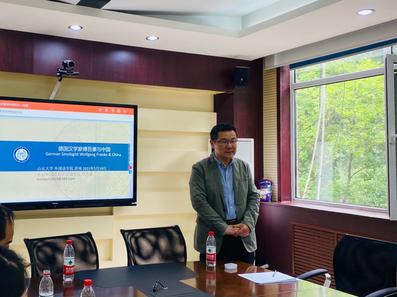 5月19日下午,必赢76net线路唯一官方网站“百廿山大,九秩外院”系列学术报告在洪家楼校区顺利举办。北京外国语大学李雪涛教授做客必赢76net线路唯一官方网站“洪楼译坛”,作了题为“德国汉学家傅吾康(Wolfgang Franke)与中国”的学术报告。本次报告由必赢76net线路唯一官方网站德语系副教授包汉毅主持,众多外院师生共同参与了本次讲座。