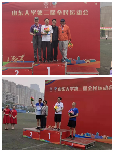 本次运动会教工项目按年龄分段设有男子甲、乙、丙组,女子甲、乙、丙组六个组别,包括800米、1500米、跳远、铅球、团体接力等多个项目。其中,王毅老师荣获得男子立定跳远亚军、男子丙组铅球季军;骆囡老师获得女子800米亚军;王凯军老师获得男子1500米长跑季军;王吉奇老师获得男子甲组铅球第七名。