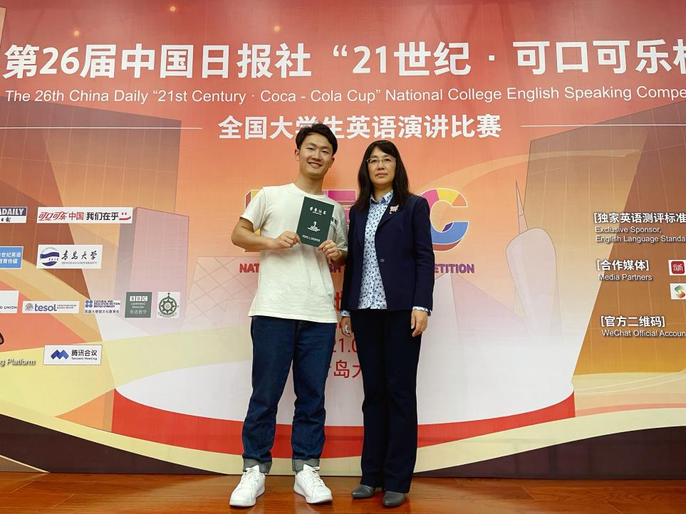 “我的演讲能力是在翻译专业课程体系下自然而然形成的,外院翻译系是培养Good speaker的摇篮。”毛涵学长说道。从2008级的高洁学姐、2014级的林铎学长再到2019级的毛涵学长,山大外院翻译系学子曾多次在“21世纪杯”、“外研社杯”等重大英语演讲比赛中取得全国一、二等奖,省级特等奖的优秀成绩,这与我校翻译专业科学的培养体系分不开。“视译课培养我快速捕捉信息、转换信息的能力;听译课培养我飞速概括信息、组织思路的能力;笔译实践使我对用词更加讲究;六个学期的口语课程为我提供更多表达机会;四个学期的写作课程让我能将更多的思想落于笔尖;西方学术思想史让我对西方文化有更深的理解;英汉语言对比让我注重用英语思维讲中国故事。在这样科学设计的课程体系培养下,演讲能力便成了自然的综合产物。”毛涵说:“我更要感谢一路以来给予我支持和帮助的系所老师们。张兆刚老师为我的已备演讲提供了思路,给予了我很多关于delivery的意见;赵爱萍老师为我的即兴演讲提供了建议,帮助我共同挑选最后的已备演讲稿件;李红老师为我提供了更多演讲演练机会,对我的发音进行了纠正。在翻译系里,这种亦师亦友的关系对我的学习起了很大的促进作用。也非常欢迎更多有志于培养演讲能力的小伙伴加入翻译系这个大家庭!”