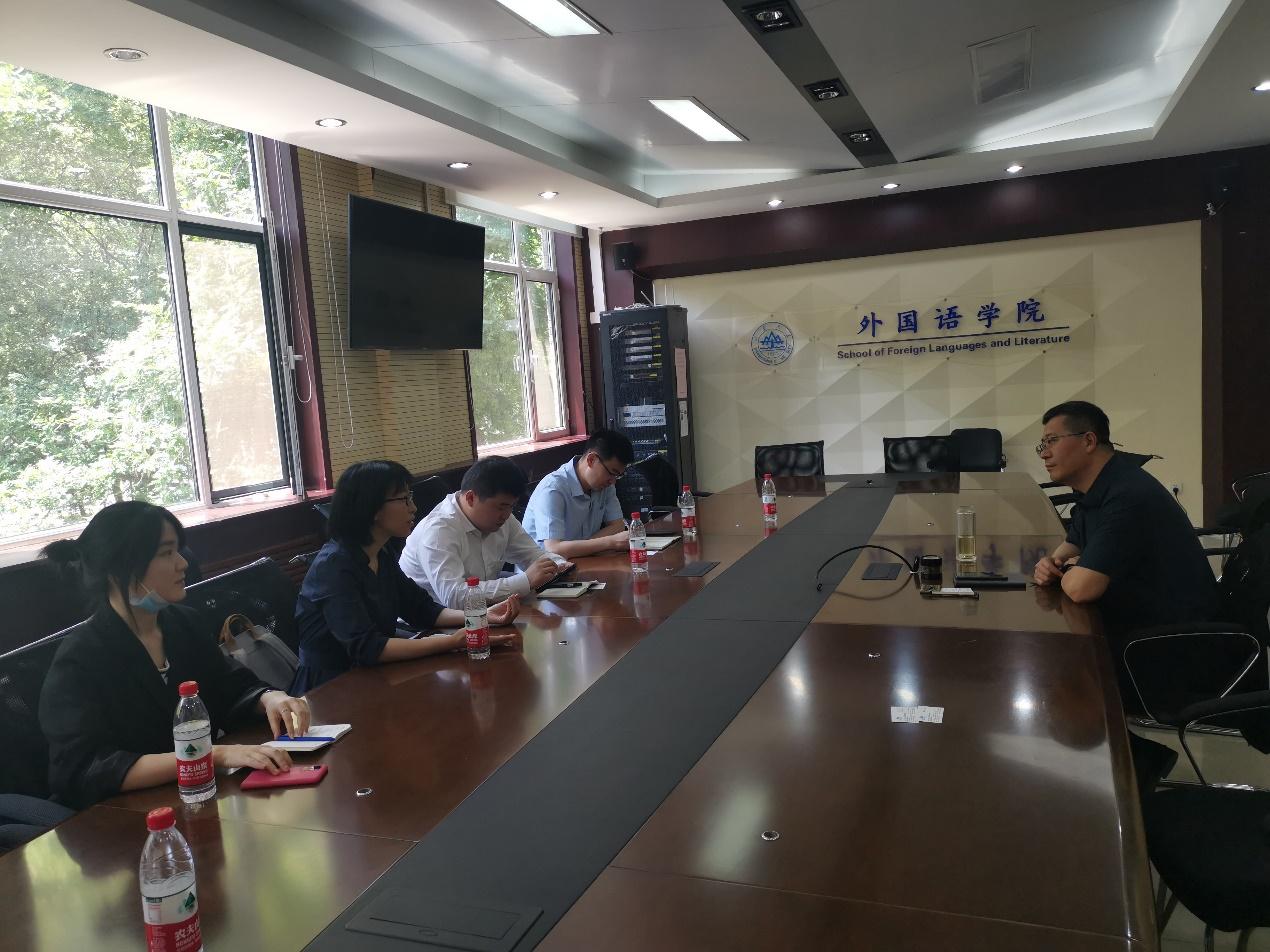 6月4日上午,山东自贸试验区济南管委会副主任陈浩、合作交流局产业服务办公室主任王鹏、济南译软信息技术有限公司总经理毛雪菲一行到必赢76net线路唯一官方网站座谈。必赢76net线路唯一官方网站副院长李建刚,党委副书记魏鲁鸿,翻译系副研究员郑春光参加本次座谈。