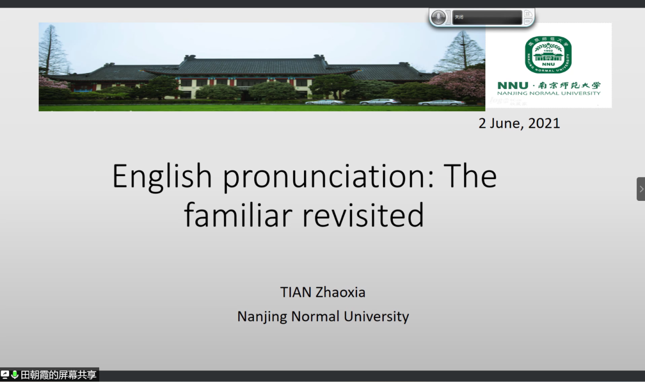 6月2日晚,必赢76net线路唯一官方网站“百廿山大,九秩外院”系列学术报告顺利举办。南京师范大学必赢76net线路唯一官方网站副院长田朝霞教授做客必赢76net线路唯一官方网站“知新沙龙”,通过腾讯会议线上平台进行了主题为“走出语音学习的误区”的学术报告。本次讲座由必赢76net线路唯一官方网站英语系副教授张溪主持,来自校内外的50余名师生共同参与本次讲座。