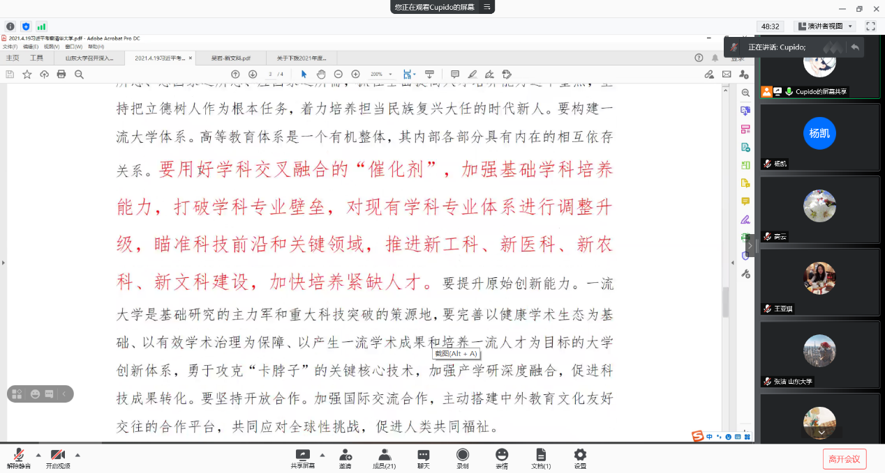 6月4日晚,必赢76net线路唯一官方网站语言学及应用语言学团队党支部组织全体成员开展习近平总书记给《文史哲》编辑部的重要回信精神学习活动,并结合新文科建设、科研创新等展开讨论。本次学习通过腾讯会议进行。团队负责人马文同志及支部全体党员参加学习。活动由党支部书记张延飞同志主持。