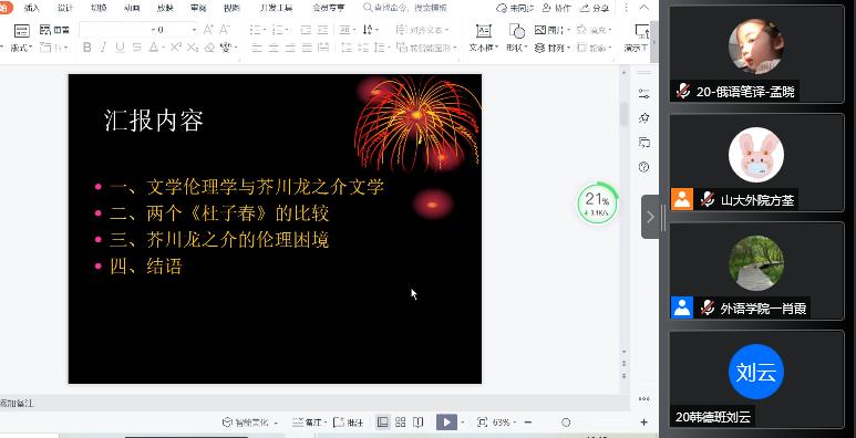 本次讲座内容丰富、深入浅出,在座师生受益匪浅,对芥川龙之介文学有了更加深入的了解。同时,本次讲座也为大家日后进行相关领域的研究提供了新的思路与角度,起到良好的启发和指导作用。
