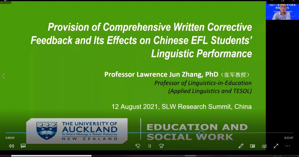 新西兰奥克兰大学Lawrence Jun Zhang教授在综述写作纠正性反馈研究现状的基础上通过一项实证研究探讨了语法纠正反馈对中国学生写作的影响,并指出书面纠正反馈中存在诸多复杂变量,综合书面纠正反馈的有效性受多方面因素影响。他通过呈现前沿文献网络,启发学者和教师们一同探讨在二语写作教学中如何提供有效纠正反馈。