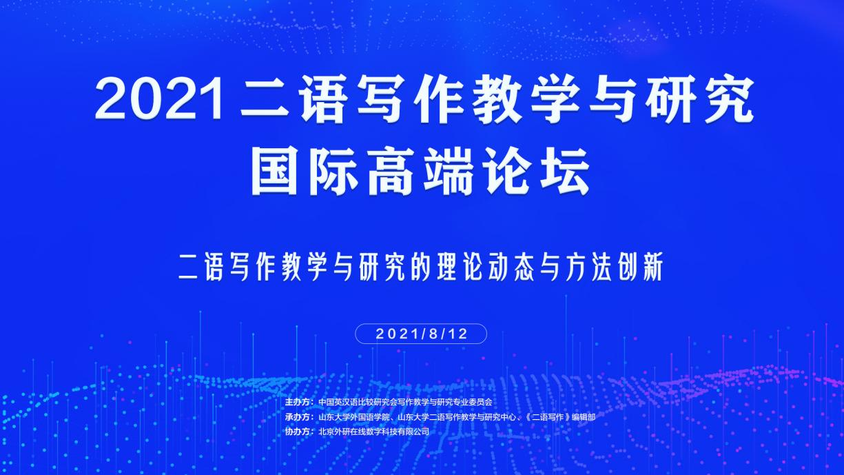2021年8月12日,2021二语写作教学与研究国际高端论坛以线上形式成功举办。论坛邀请了来自海内外的11名二语写作资深专家及青年领军学者就当下二语写作教学与研究的理论动态与方法创新展开探讨。论坛吸引了来自海内外4000余名学者、教师、学生参加,共同探索全球化、跨学科视域下我国二语写作教学与研究的创新发展之路。
