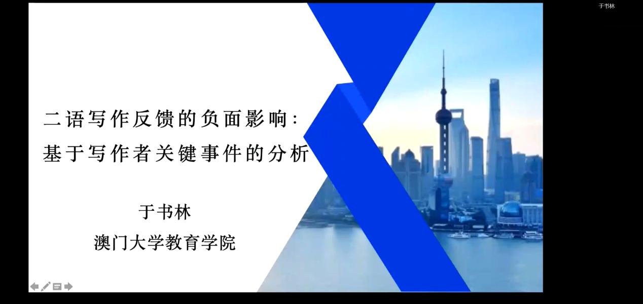 澳门大学于书林教授从社会建构主义视角出发,揭示了二语写作反馈对写作者的负面影响以及写作者的应对方式和策略。他指出,教师应该建立写作反馈可能对学生带来负面影响的意识,通过提高教师和学习者的反馈素养来降低反馈的负面影响。