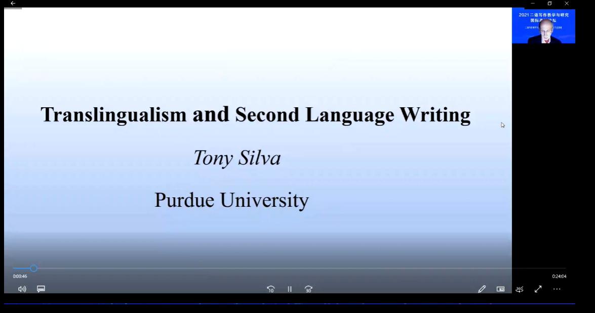 会上,发言专家结合自己的研究背景,就二语写作教学与研究的新动态和新发展进行了汇报。美国普渡大学Tony Silva教授详尽展示并剖析了超语言写作思潮历时近半个世纪的发展及其与二语写作之间的交集和两者关系引发的争议,构建了超语言写作与二语写作协同发展的全貌,探讨了二者互补、协同并进的发展前景。