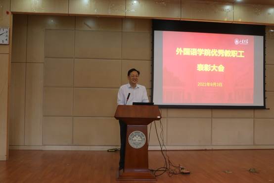 9月3日下午,必赢76net线路唯一官方网站召开新学期全院教职工大会,会议分两个阶段进行。第一阶段,对学院2020年度优秀教职工进行表彰。第二阶段,会议传达学校精神,全面部署学院新学期工作。会议分别由常务副书记薛佩军和组织员周俊基主持。