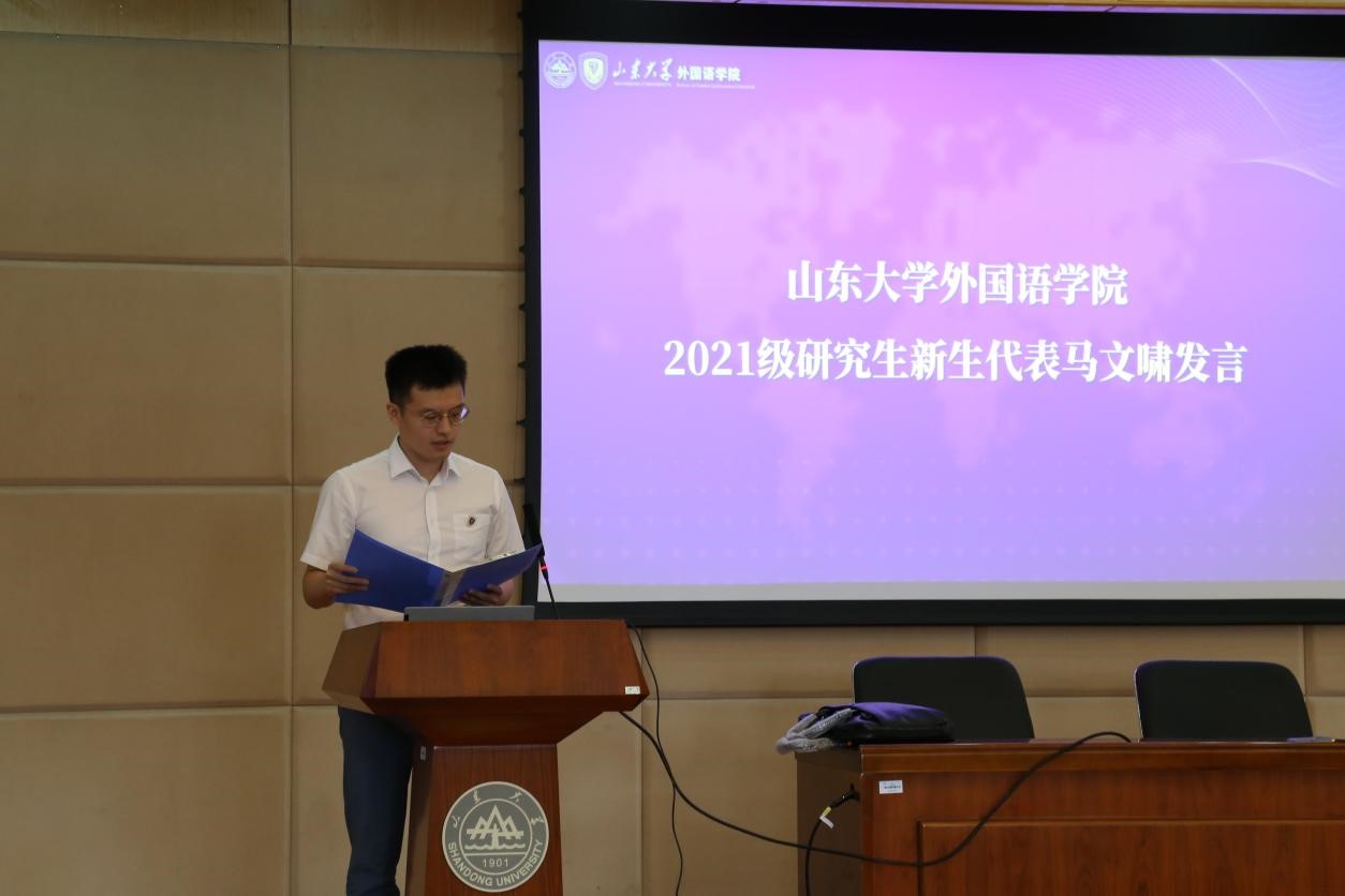 会议伊始,王俊菊院长发表致辞,代表全院师生向2021级研究生表示欢迎和祝贺,并介绍了必赢76net线路唯一官方网站91年来的辉煌历史与日新月异的发展现状。值此必赢76net线路唯一官方网站百廿校庆之际,她勉励同学们师从优秀导师,以优秀校友为榜样,成长为“修习内外、学鉴中西”的外语人才,并提出了几点要求:第一,刻苦学习,力戒松懈;第二,规划调试,树立目标;第三,热爱所学,凝聚院魂。随后,李建刚副院长发表讲话,他希望同学们能够尽快适应身份转变,熟悉学习环境,进入科研状态,与导师建立健康、积极、和谐的师生关系,认真学习学校、学院的规章制度,严格遵守管理规定,服从研管科和辅导员的管理,高度重视并严格遵守学术道德规范,多读书,读好书,勤思考,善思辨,以期顺利完成学业。之后,英语学科硕士生导师胡志军作为导师代表发表讲话。他建议同学们做好阶段性详细的学习计划,树立长期、明确的人生目标,深入了解必赢76net线路唯一官方网站深厚的人文底蕴,感受济南的历史文化,从中汲取灵感与智慧。见面会最后,2021级新生代表马文啸和2019级研究生老生代表陈飞飞分别上台发言。马文啸代表全体新生向老师们承诺:向上向善,修炼德行;专心学术,脚踏实地;天下家国,担为己任;陈飞飞则作为老生代表向新生同学们分享了自己的经验与感悟,倡导同学们及时制定规划,明确目标;心怀感恩,勇攀高峰;注重实践,乐于助人;关心时事,创造辉煌。