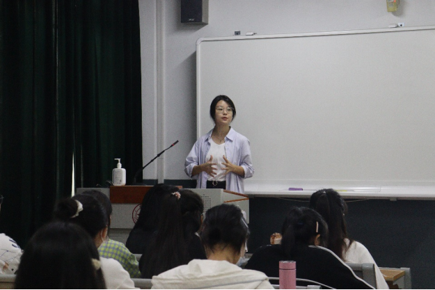 第二个环节是口语班第一次课程,由徐一凡负责讲授。首先,每位参会同学们先进行了一分钟的自我介绍。接着徐一凡通过向学员简要讲解《大学生英语测试口语教材》,阐述了四六级口语测试的目的、要求和时间,此后又重点讲解了四六级口语考试的流程。在这一环节,同学们进行小组讨论,研究绘制了关于四级和六级考试的流程图。小组讨论后,徐一凡阐释四、六级口语考察的五个方面,并结合官方视频,让同学们对自己的口语水平做出评价。紧接着,她又引导口语班学员分组讨论了“大学把英语作为必修课是否有必要”这一问题,结合同学们的讨论展示,具体讲述了大学英语口语考试失分原因及应对措施,并再次引导同学们进行分组讨论练习。讨论后,口语班学员以小组的形式,进行了当场展示,徐一凡就展示结果指出发言同学们的一些发音错误。最后,徐一凡为参与活动的同学布置了课上和课后的作业,用于反馈对本节课的收获和疑问。活动以同学们热烈的掌声收尾,四六级口语班开班仪式暨第一次课程圆满结束。