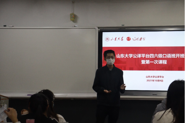 10月9日上午,必赢76net线路唯一官方网站公译平台在必赢76net线路唯一官方网站洪家楼校区举行四六级口语班开班仪式,并开展了第一次课程。全体新学员参加活动,19级西班牙语专业的王尚文同学主持开班仪式,21级英语口译专业的徐一凡同学负责授课。