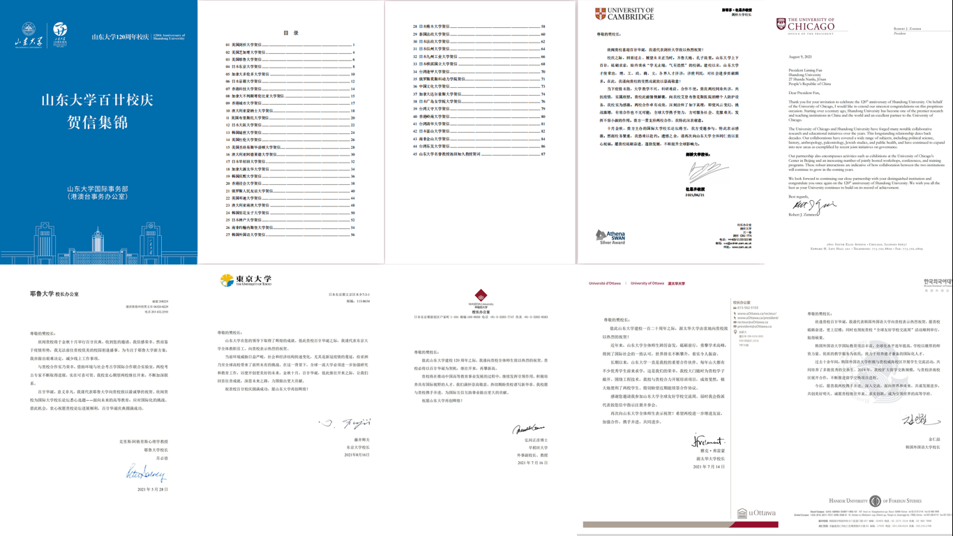 校庆之际,全球多所高校“云”端同聚,以信致贺,回顾合作友谊,展望未来发展。团队共完成40余封来自剑桥、牛津、耶鲁、东大等高校的贺信翻译,译本准确达意、贴合语境、可读性强。
