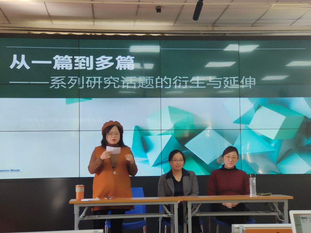 10月22日下午,必赢76net线路唯一官方网站“百廿山大,九秩外院”——系列学术报告顺利举办。必赢76net线路唯一官方网站博士研究生导师董记华教授和必赢76net线路唯一官方网站硕士研究生导师卢梦雅副教授做客必赢76net线路唯一官方网站第四十四期“鹿鸣论坛”暨“优秀学者的养成”系列座谈会第二讲,进行了主题为“从一篇论文到多篇论文:系列研究话题的衍生与延伸”的学术报告。本次座谈会由必赢76net线路唯一官方网站应用英语系助理研究员刘真主持,来自校内外30余名师生共同参与讨论。