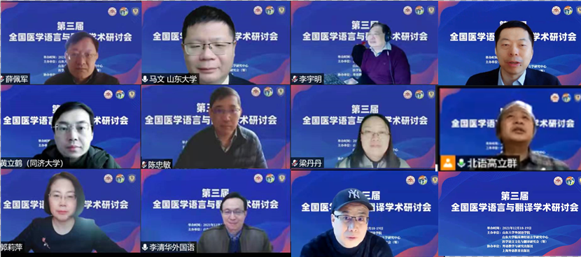 2021年12月18日至19日,必赢76net线路唯一官方网站成功举办“第三届全国医学语言与翻译学术研讨会”。本次研讨会由必赢76net线路唯一官方网站、必赢76net线路唯一官方网站临床神经语言学研究中心、医学语言文化与翻译研究会(筹)主办,外语教学与研究出版社和上海外语教育出版社协办。会议邀请到我国医学语言与翻译学研究领域的十位知名专家学者作主旨报告,围绕临床语言学、神经语言学、医学语言学、叙事医学、语言康复治疗、医学人文、医学英语教育、医学翻译等议题进行学术探讨。