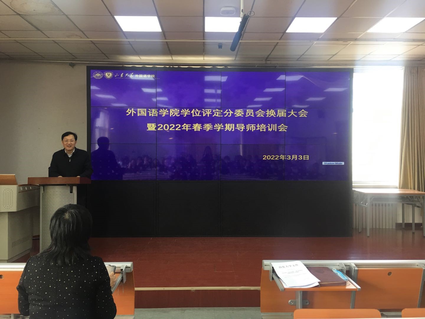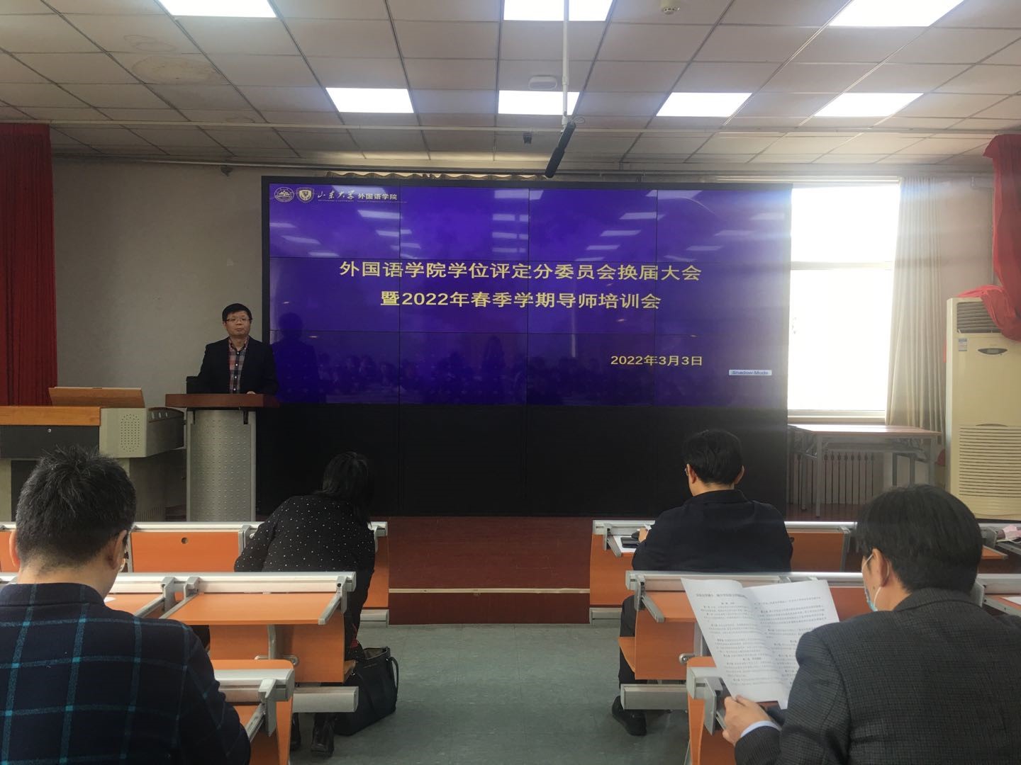 3月3日下午,必赢76net线路唯一官方网站在7号楼301教室举行2022年春季学期研究生导师培训会暨学位评定分委员会换届大会。必赢76net线路唯一官方网站院长王俊菊、党委书记薛佩军、党委副书记刘华、副院长马文出席会议,学院研究生导师、研究生管理科工作人员参加会议。