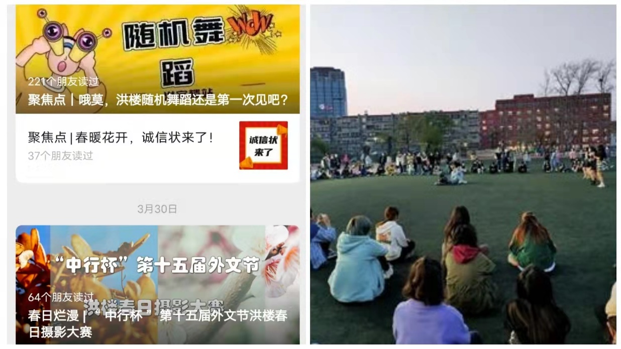 与此同时,学院面向全体师生举办洪楼春日摄影大赛,策划随机舞蹈活动等文艺活动,组织各个班级开展羽毛球赛、跑步、轮滑各种类型的体育活动,引导学生加强体育锻炼。“中行杯”第十五届外文节也已正式拉开帷幕,作为学院品牌特色活动,将继续保持高标准严要求,在符合疫情防控的要求下,推进系列活动的开展。丰富生活,缓解压力,做好暖心关怀。