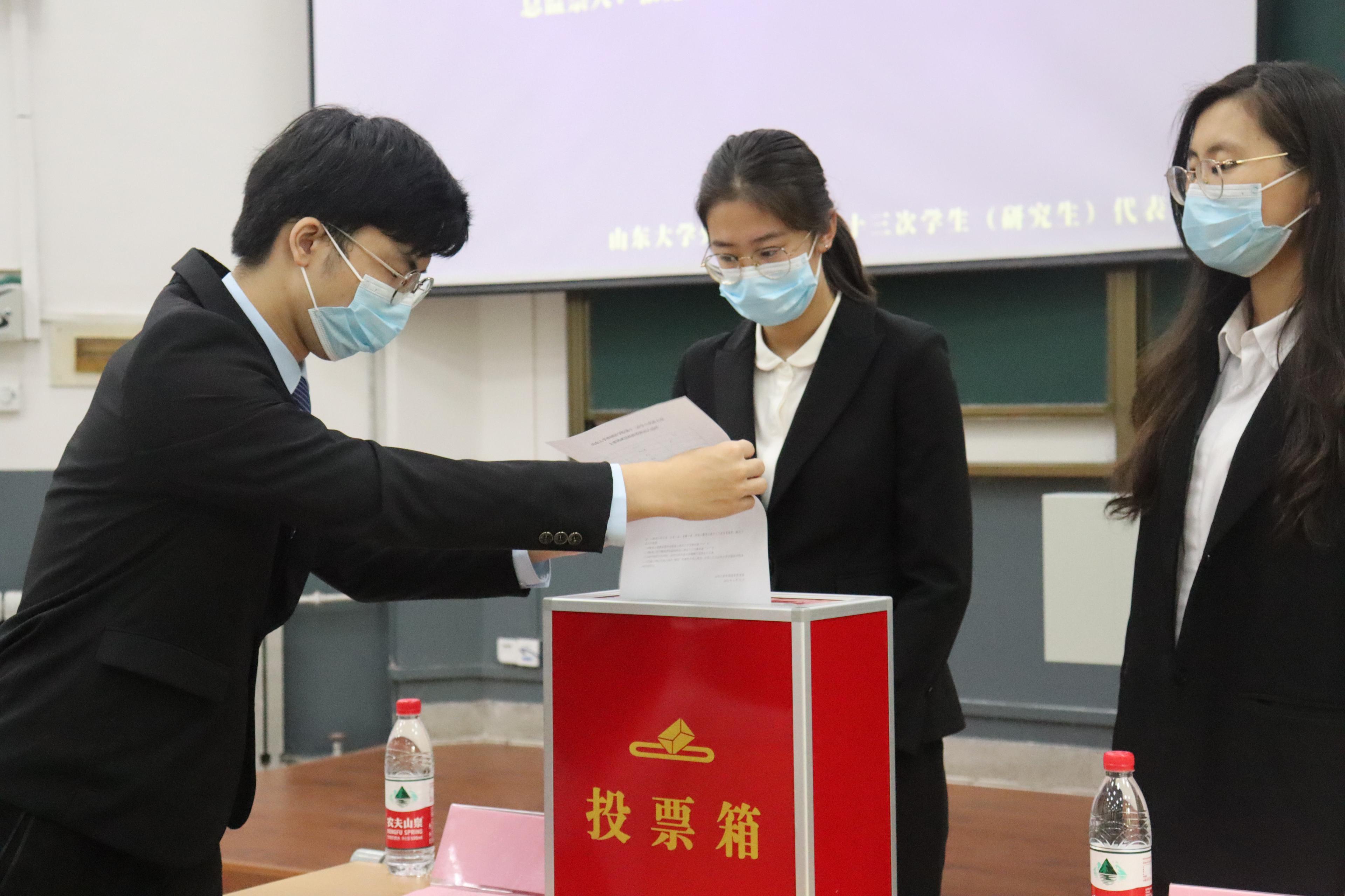 闭幕式上,本科生和研究生代表分别就代表团议题和讨论结果进行汇报。经过公正合理的投票流程,本科生、研究生两位总计票人分别宣布换届选举的投票结果。大会最后,与会者全体起立,共唱山大校歌。