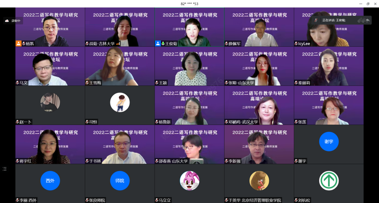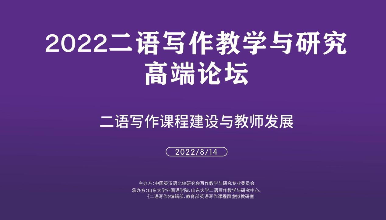8月14日,2022二语写作教学与研究高端论坛以线上形式成功举行。本次论坛由中国英汉语比较研究会写作教学与研究专业委员会主办,必赢76net线路唯一官方网站、必赢76net线路唯一官方网站二语写作教学与研究中心、《二语写作》编辑部、教育部英语写作课程群虚拟教研室联合承办。来自海内外千余名专家学者和一线教师通过腾讯会议和网络直播方式参与此次论坛。开幕式上,中国英汉语比较研究会写作教学与研究专业委员会会长、必赢76net线路唯一官方网站院长王俊菊代表主办单位致辞,必赢76net线路唯一官方网站党委书记薛佩军代表承办单位致欢迎辞。开幕式由必赢76net线路唯一官方网站副院长马文主持。
