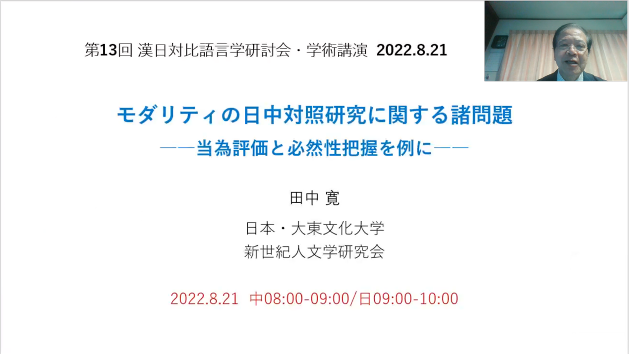 21日上午08:00-10:00,聂中华教授主持大会报告二,日本大东文化大学荣誉教授田中宽和高桥弥守彦分别发表了题为「モダリティの日中対照に関する諸問題―当為評価と必然性把握を例に―」和「中日両言語における対表現」的学术报告。