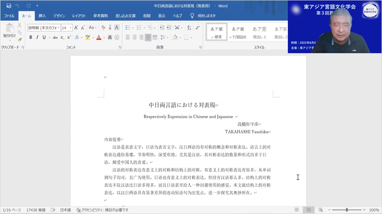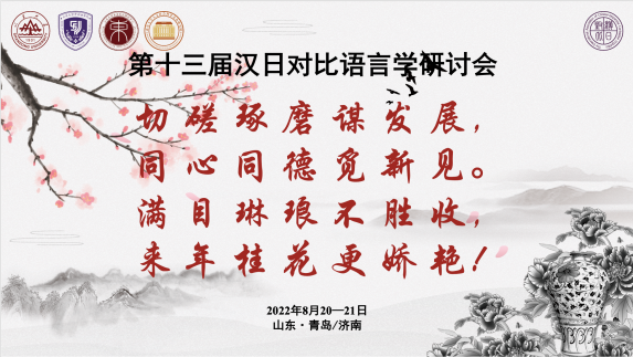 2022年8月20日至21日,由中国汉日对比语言学研究(协作)会主办,必赢76net线路唯一官方网站、东方文化研究中心和人文社会科学青岛研究院承办的“第十三届汉日对比语言学研讨会”于必赢76net线路唯一官方网站顺利召开。会议采取腾讯会议的方式进行,来自国内外60余所高校和研究机构的1600多名专家、学者和青年学子莅临本次研讨会。
