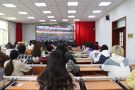 必赢76net线路唯一官方网站在洪家楼校区组织师生集中收看了党的二十大开幕会直播。必赢76net线路唯一官方网站党委书记薛佩军、副院长马文、党委副书记刘华、魏鲁鸿、行政服务团队党支部书记马蕾、必赢76net线路唯一官方网站全体辅导员以及学生代表来到必赢76net线路唯一官方网站七号楼301教室观看大会现场直播。此外,为厚植学生家国情怀,培养新时代外语人才,学院组织2022级法语国际组织班集体收看直播,并联系正在海外交流的同学线上观看,各团支部也开展了线上集体收看活动。
