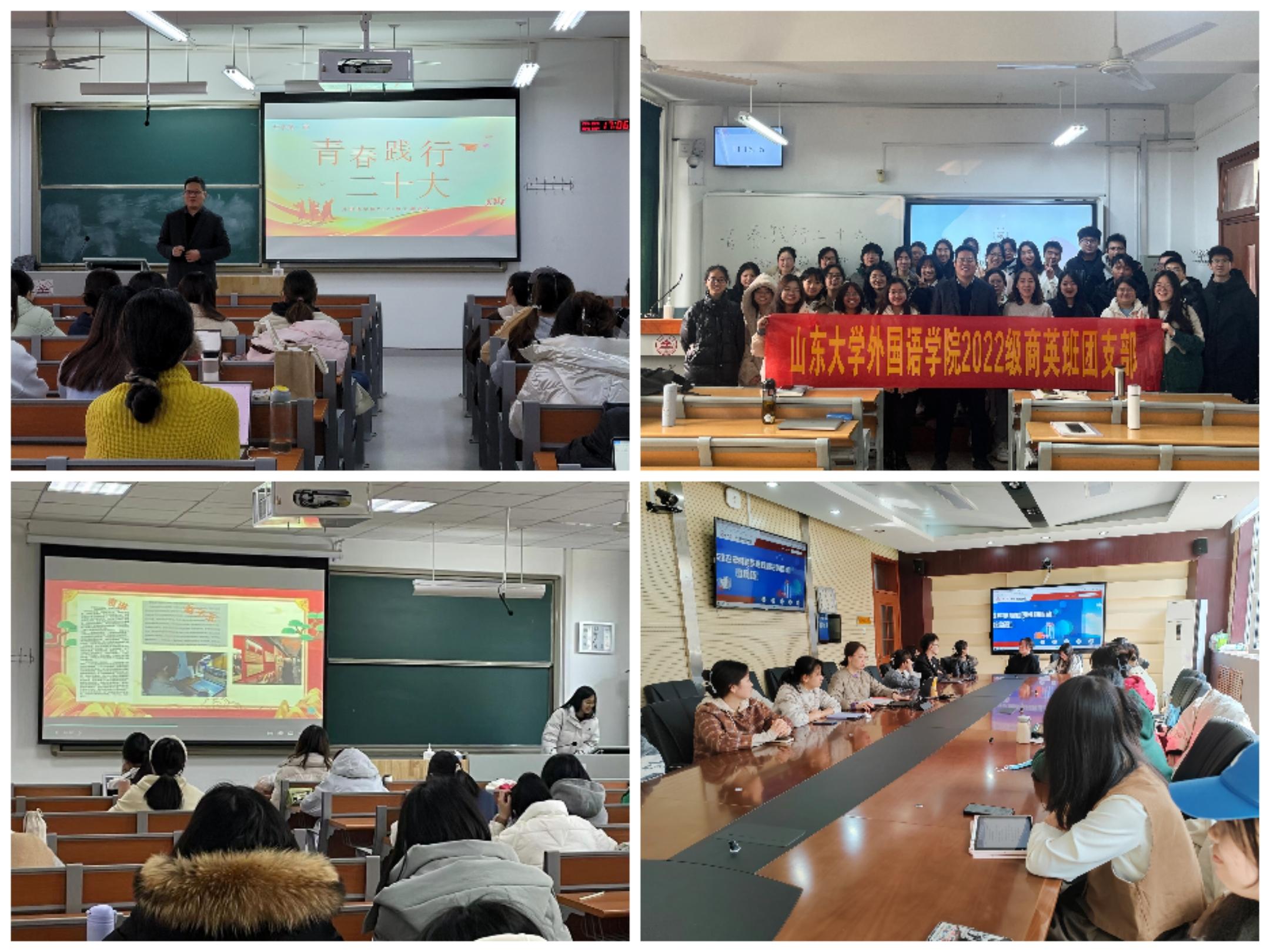立足学生实际,组织“开学第一次主题班会”。各年级辅导员根据学生成长成才规律,分类开展有针对性、有吸引力的主题班会:2019级辅导员李栋针对毕业班学生特点,结合党的二十大中有关教育、就业和经济的重要论述,为同学们分析了就业形势,鼓励同学们要树立远大志向,将个人成长、毕业去向融入国家发展大计之中。2020级辅导员朱蕾以“回望征程再出发,接续奋斗向未来”为主题,带领同学们回顾三年的学习生涯,引导大家畅谈自我发展规划,展望未来奋斗方向。2021级辅导员陈诺召开“青春践行二十大”主题班会,向同学们提出新学期的新要求,启迪大家以青春之我融入国家发展,在多个领域发光发热,充分展现自己。2022级辅导员赵婧婧立足各班寒假社会实践,组织开展了“青春践行二十大 我‘语’祖国共成长”主题班会活动,强调社会实践的重要意义,鼓励同学们用实际行动践行必赢76net线路唯一官方网站“修习内外,学鉴中西”的院训。此外,学院党委副书记魏鲁鸿也参与了各年级主题班会,强调当代青年不仅要将学习作为首要任务,也应当感悟新时代、紧跟新时代,拥抱“后疫情时代”多姿多彩的大学生活。