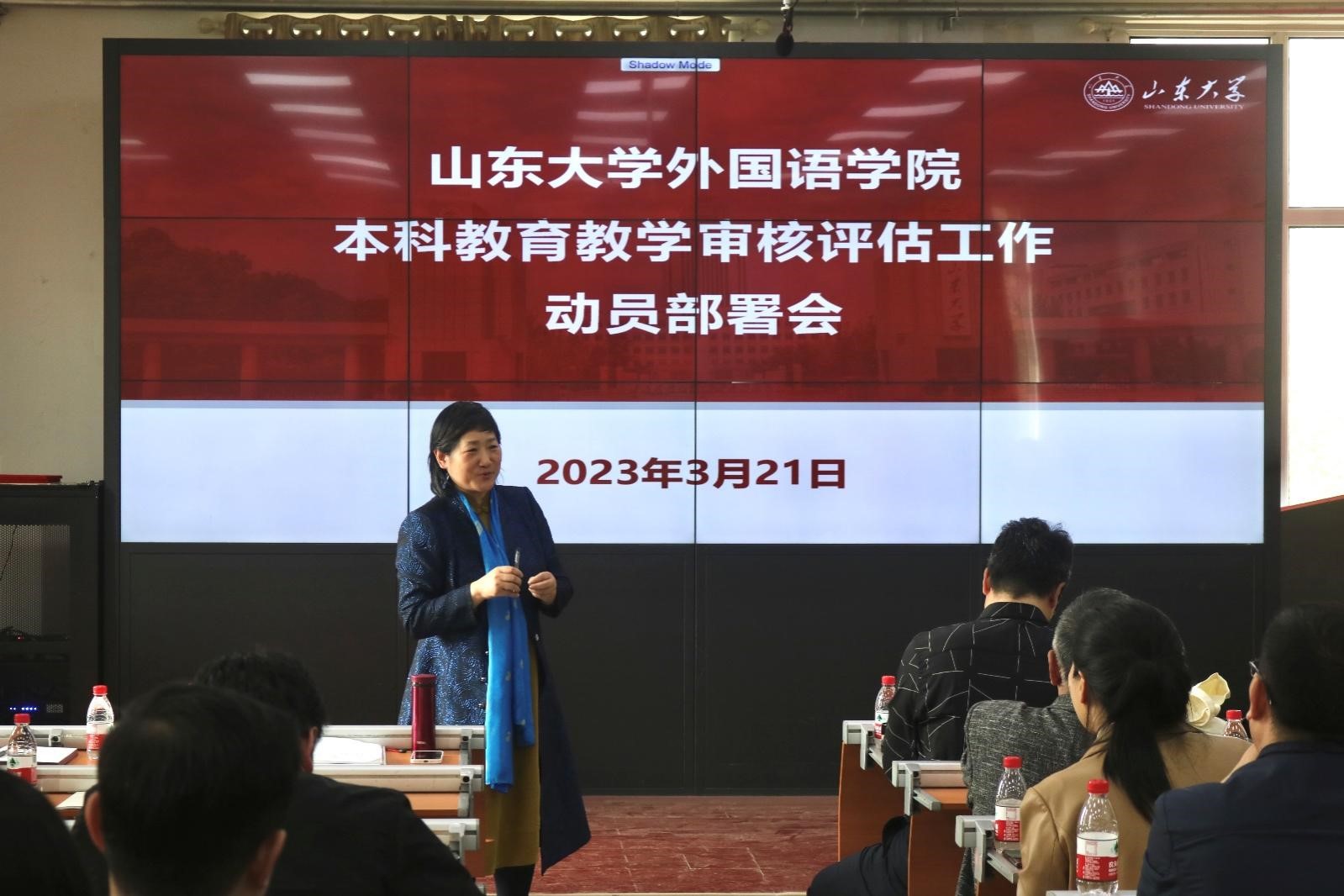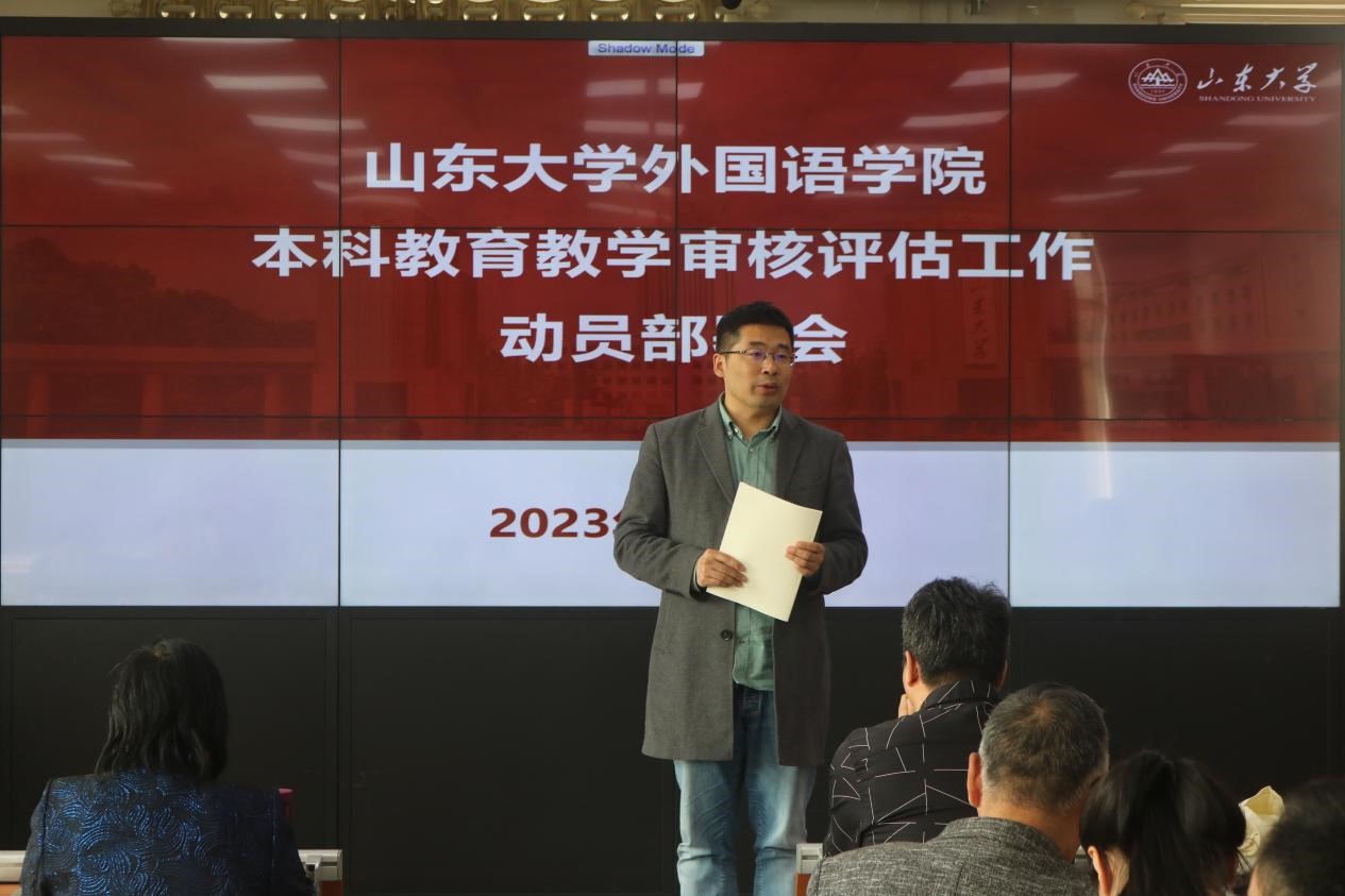 为扎实做好即将到来的新一轮本科教育教学审核评估工作,明确工作要求和任务,提振工作精神与士气,3月21日下午,我院召开本科教育教学审核评估工作动员部署会。必赢76net线路唯一官方网站教学促进与教师发展中心副主任李建刚,必赢76net线路唯一官方网站院长王俊菊、党委书记薛佩军、党委副书记刘华、党委副书记魏鲁鸿、副院长苏永刚、专业各系系主任、大外部各教研室负责人、各机关科室负责人、学院评估专家组成员等参加会议,副院长刘洪东主持会议。