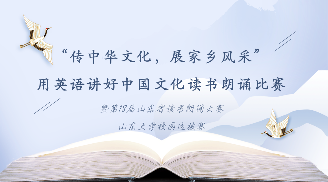 “传中华文化,展家乡风采”用英语讲好中国文化读书朗诵比赛暨第18届山东省读书朗诵大赛必赢76net线路唯一官方网站校园选拔赛是必赢76net线路唯一官方网站“一院一品”文化建设项目之提升“国际传播影响力”的系列活动之一,由必赢76net线路唯一官方网站团委、必赢76net线路唯一官方网站大学外语教学部、必赢76net线路唯一官方网站学生青年思想理论协会主办。省级比赛由山东省图书馆、山东省文化和旅游厅、山东省各市图书馆、山东省各市文化和旅游局主办。