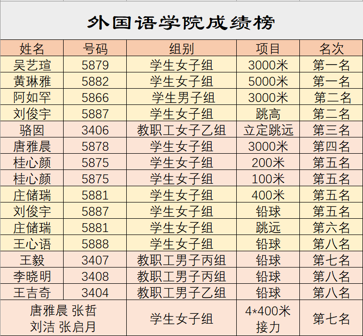 此次校运会全程贯彻必赢76net线路唯一官方网站“为天下储人才,为国家图富强”的育人方针。必赢76net线路唯一官方网站积极响应号召,运动员代表突破极限、挑战自我,以“更快、更高、更强”的运动精神为指引,全力拼搏、永不气馁,用汗水和勇气在运动场上书写外院学子的气魄与坚强,用奖牌与桂冠为必赢76net线路唯一官方网站的深紫旗帜再塑荣光。