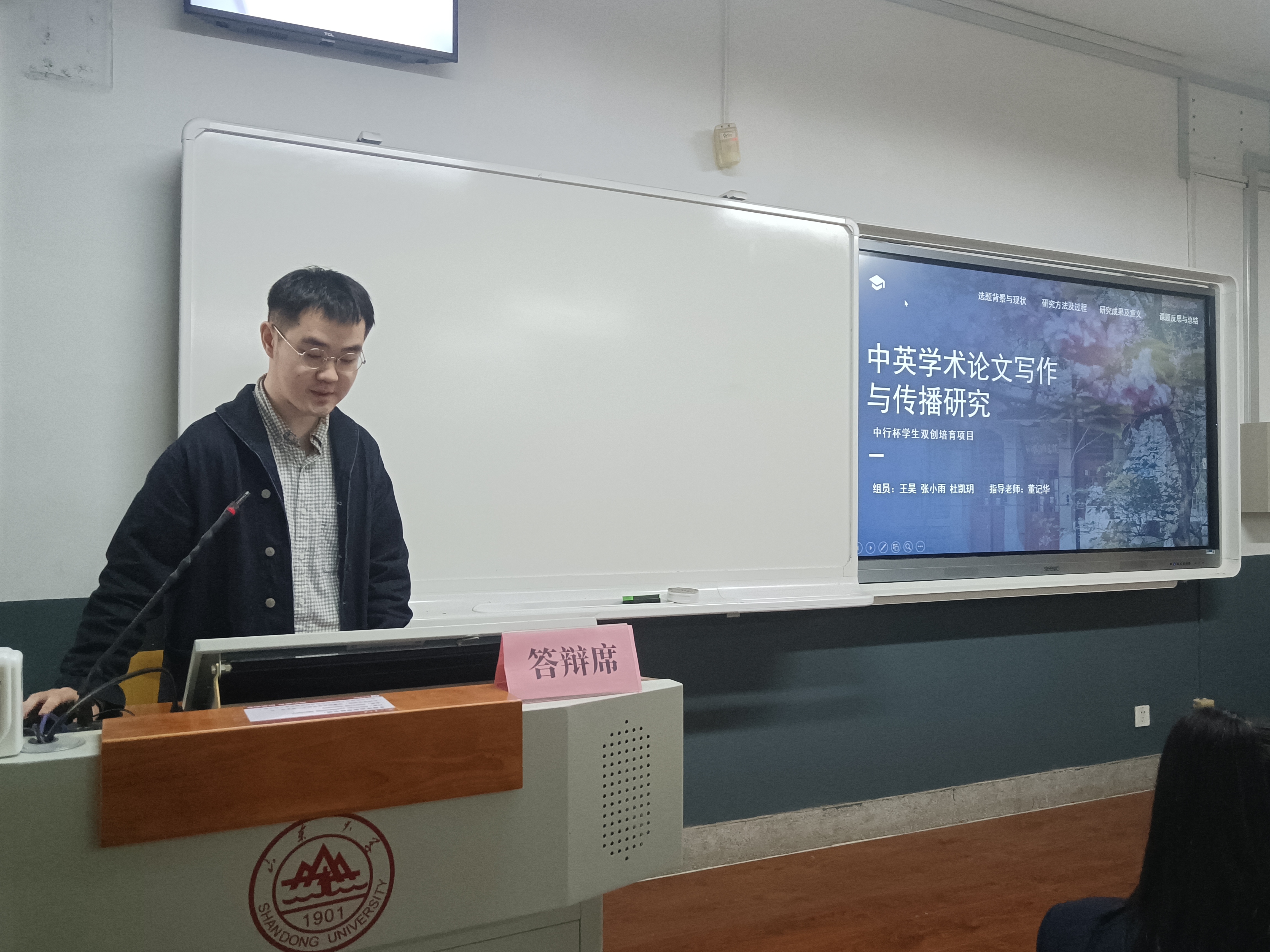 本次答辩线上线下同时进行,共有15支项目组参与。多组同学基于传统文化经典作品进行多角度阐释,他们分别以归化和异化理论、空间思维模式、译本对照等角度对《红楼梦》、《雪山飞狐》等文本的外译传播提出了思考。此外,多个项目组聚焦国际传播和语言政策等国家战略,从传播学、语言学、文学等角度对于中国国家形象、突发事件中的语言政策进行研究,产生了一定的创新。而语言学作为科学也受到了一定的重视,各组研究对象扎根语言实际,包含朋友圈中的语言请求行为和方言自我厌恶等话题。各项目组能够根据立项指引和项目书进行有计划地研究,并产生了一定的成果,部分项目阶段性成果论文刊发在SSCI期刊或在国内外学术会议、比赛中获得名次,展示了本次双创培育项目对于学生创新的推动作用。