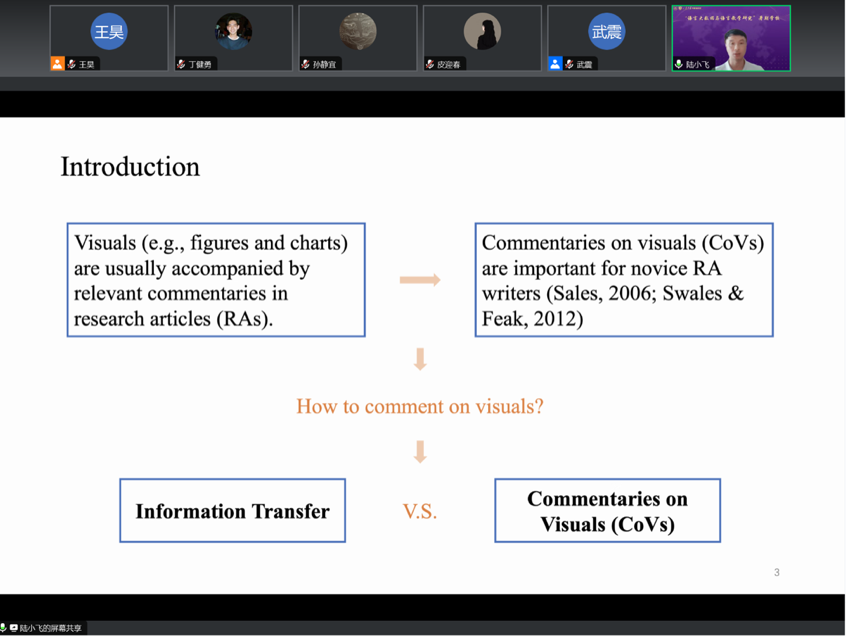 7月10日至7月13日,宾夕法尼亚州立大学Xiaofei Lu教授相继带来“Meaning and Function Dimensions of Linguistic Complexity Analysis”、“A rhetorical move and phraseological analysis of commentaries on visuals”、“研究话题选取与国际期刊论文写作”的讲座,讲座论证了语言复杂度分析中意义与功能维度的重要性,阐释和解析了视觉评论在跨学科的学术写作中的作用。同时,Xiaofei Lu教授结合自身多年来开展跨学科合作研究以及国际期刊论文写作、修改、发表和审稿的经验与实例,为大家分享和解析了研究生应如何在这些领域解决遇到的问题,并与学员就复杂度、论文写作相关问题进行了深入探讨与交流。