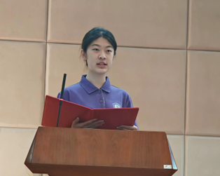 2023级英语与法学双学位班尹子钰同学作为新生代表发言。新生活、新挑战、新境界,尹子钰从“新”讲起,讲述了她选择必赢76net线路唯一官方网站的理由。展望未来,她希望今后能培养更高水平的思考方式和国际视野。最后,她代表全体新生表达了昂扬的斗志和饱满的热情,立志成为“修习内外、学鉴中西”的山大外语人。
